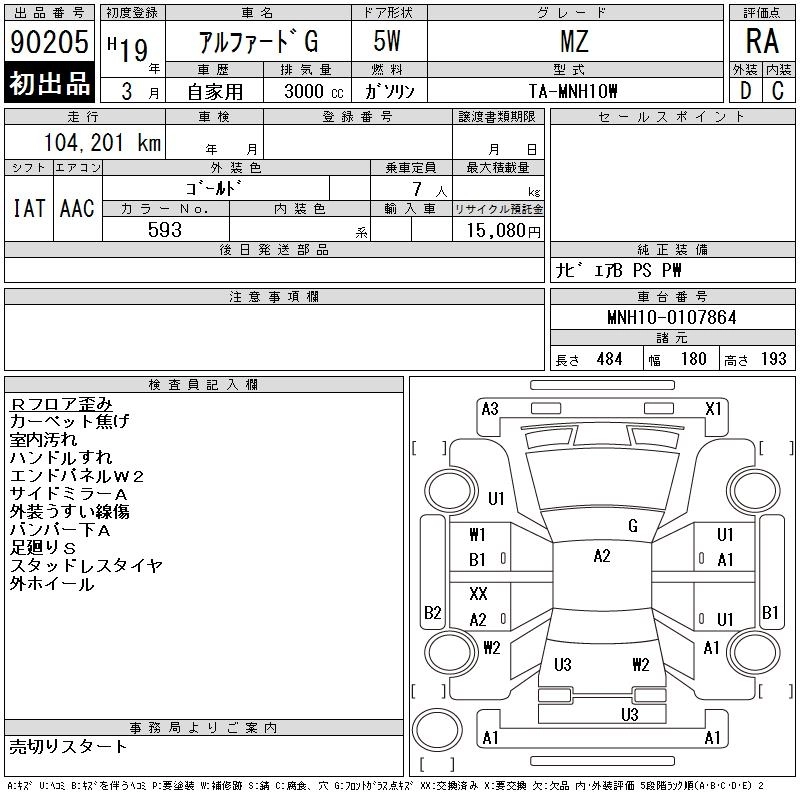 TOYOTA ALPHARD G 2007 г., лот № 90205