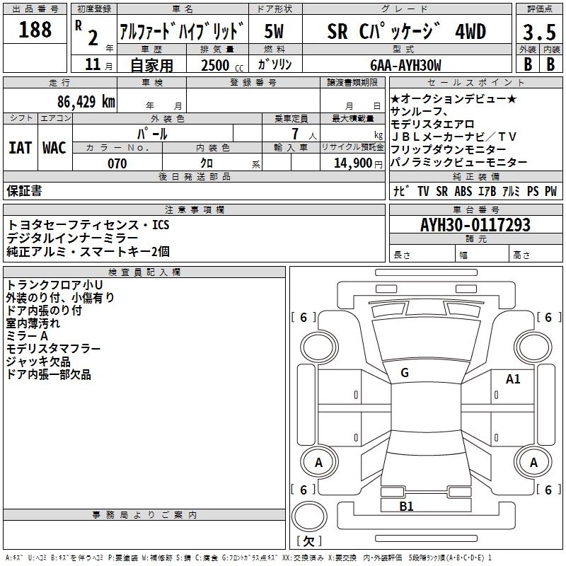 TOYOTA ALPHARD HYBRID 2020 г., лот № 188