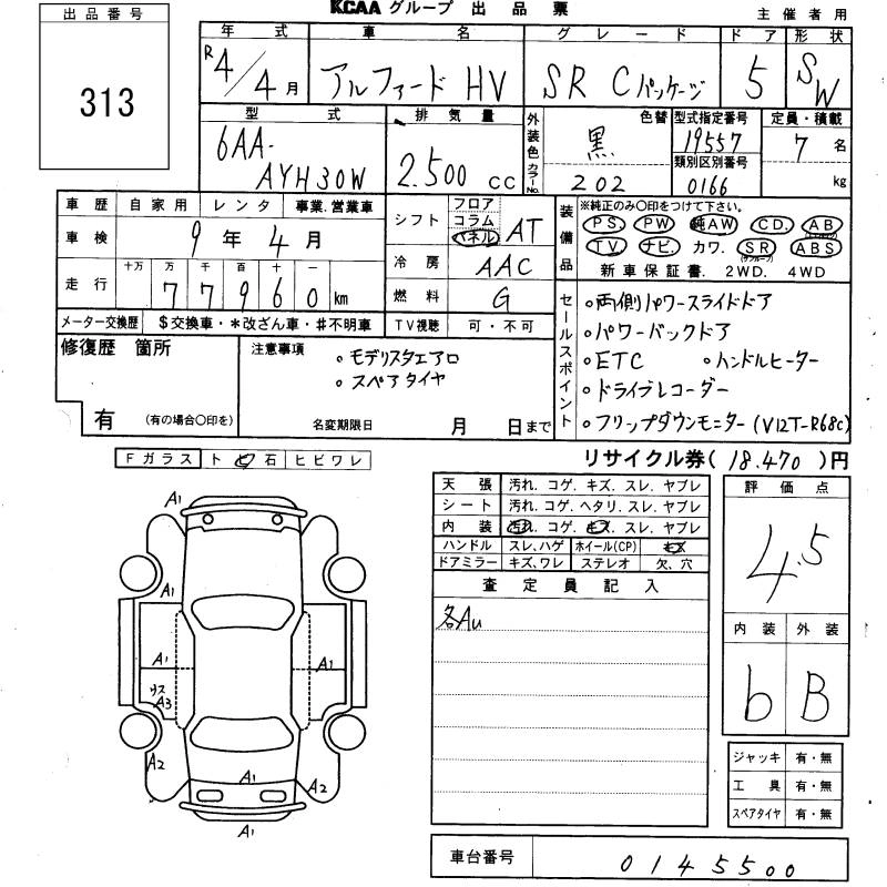 TOYOTA ALPHARD HYBRID 2022 г., лот № 313