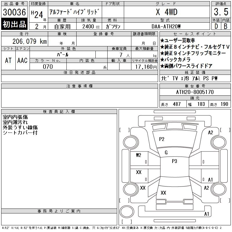 TOYOTA ALPHARD HYBRID 2012 г., лот № 30036