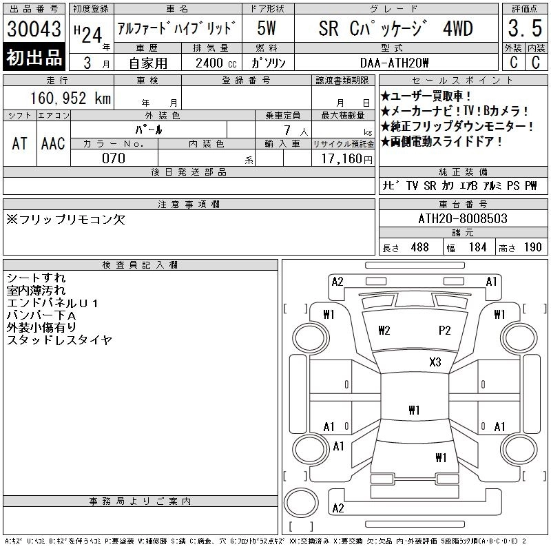 TOYOTA ALPHARD HYBRID 2012 г., лот № 30043