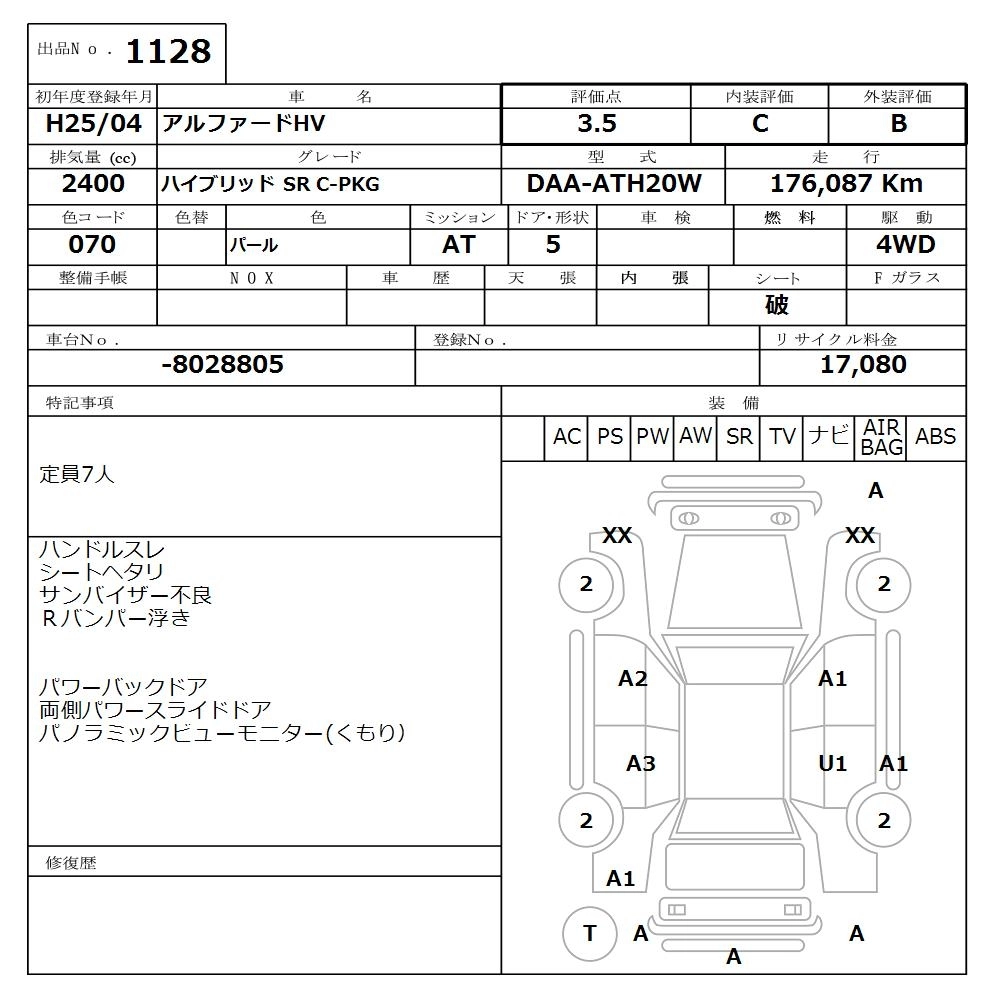 TOYOTA ALPHARD HYBRID 2013 г., лот № 1128