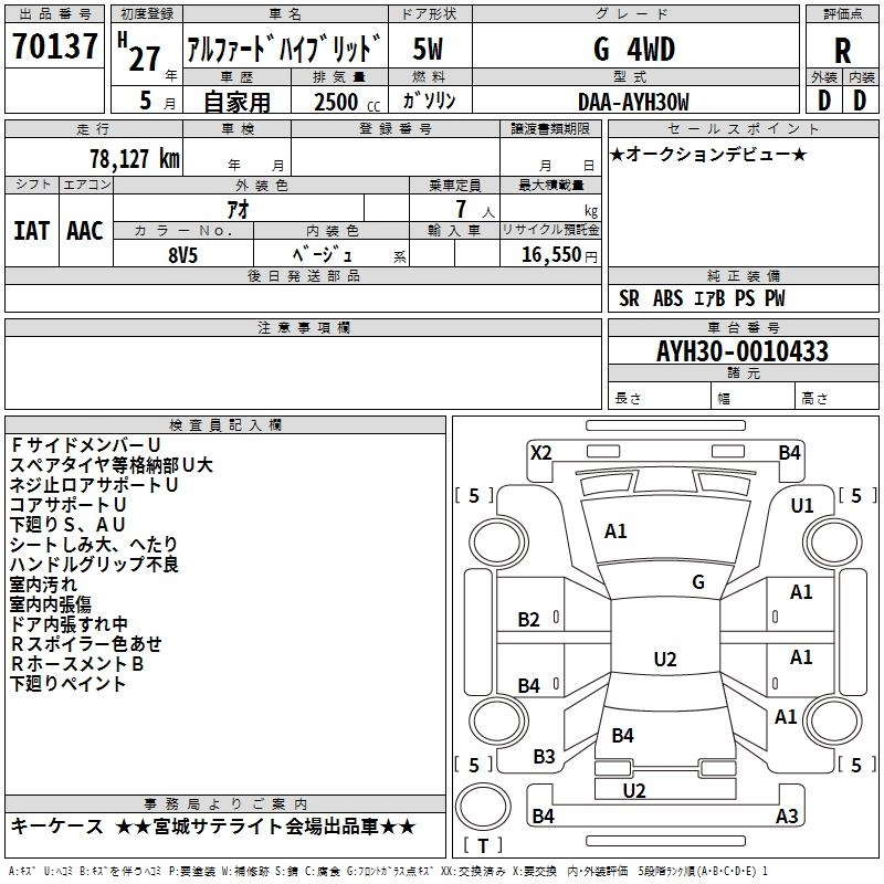 TOYOTA ALPHARD HYBRID 2015 г., лот № 70137