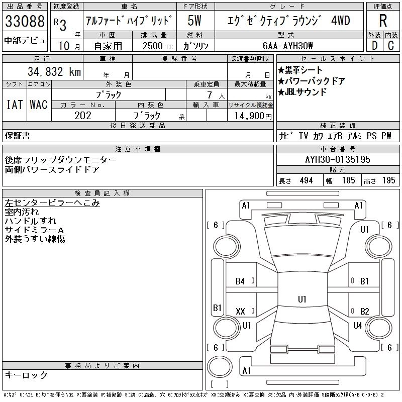 TOYOTA ALPHARD HYBRID 2021 г., лот № 33088