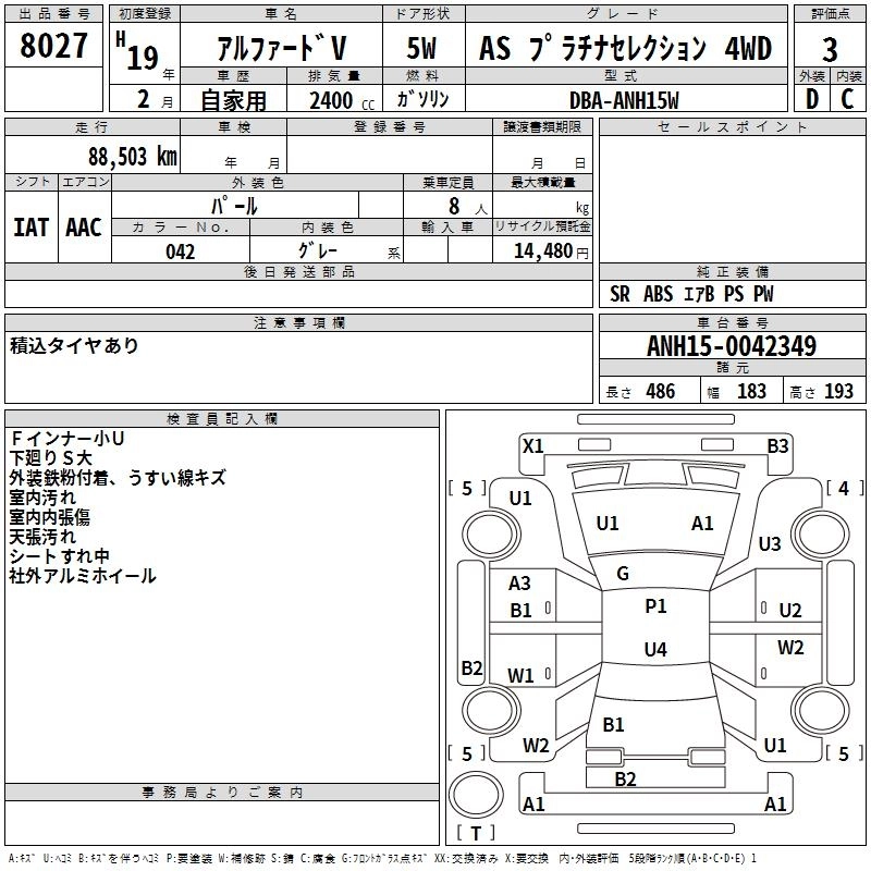 TOYOTA ALPHARD V 2007 г., лот № 8027
