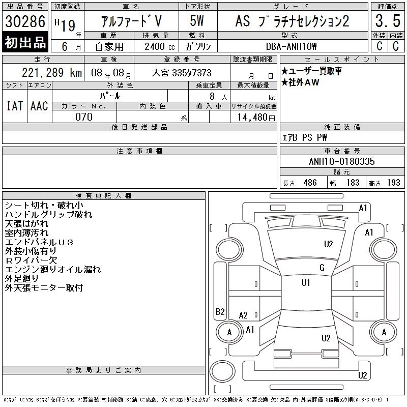TOYOTA ALPHARD V 2007 г., лот № 30286