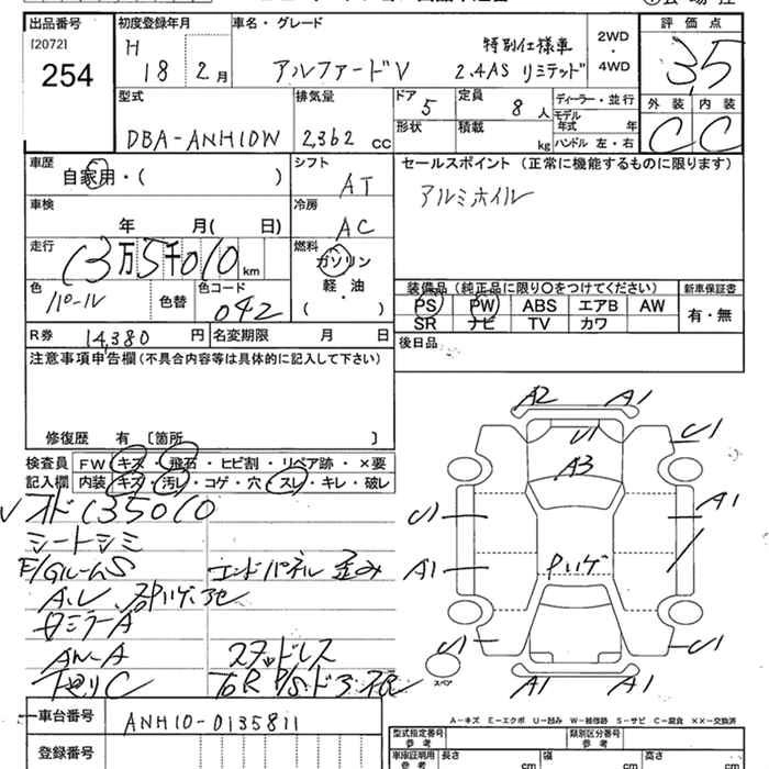 TOYOTA ALPHARD V 2006 г., лот № 254