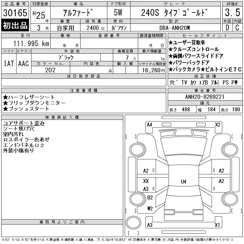 TOYOTA ALPHARD 2013 г., лот № 30165