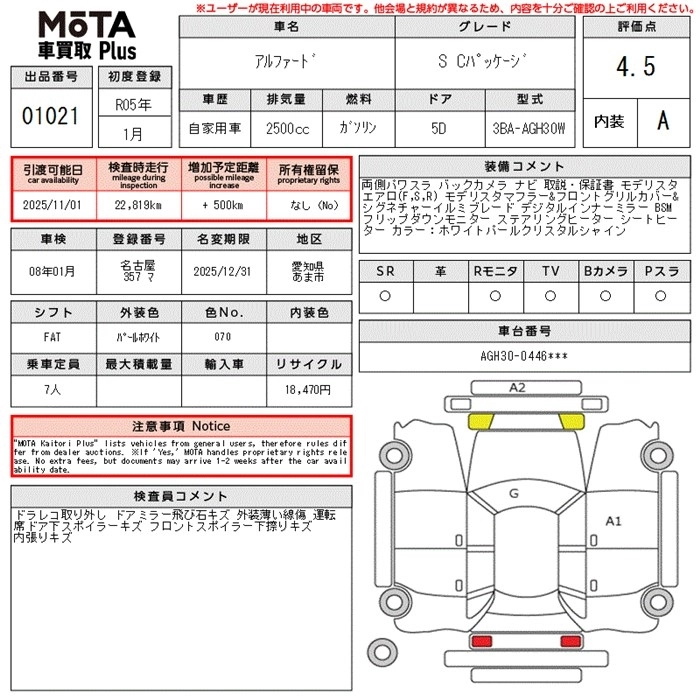 TOYOTA ALPHARD 2023 г., лот № 1021