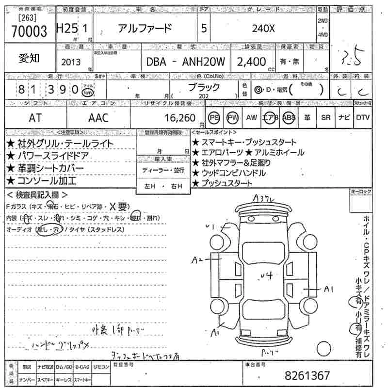 TOYOTA ALPHARD 2013 г., лот № 70003