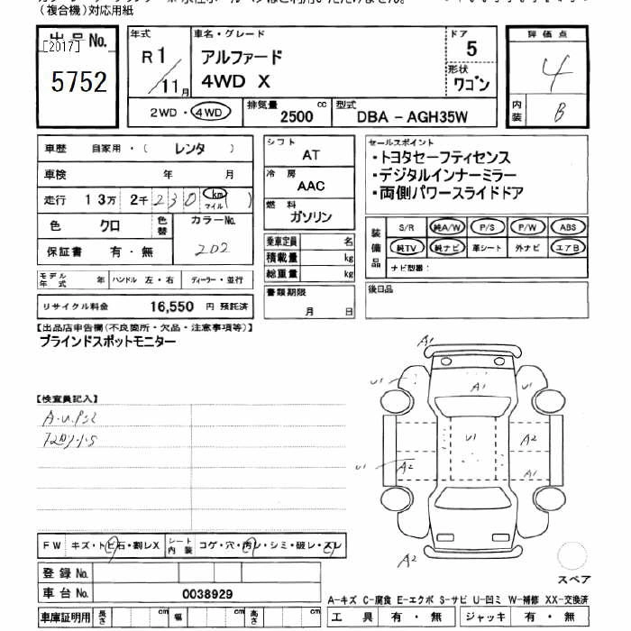 Год выпуска2019 Пробег 132 000 км КузовAGH35W Комплектация4WD X