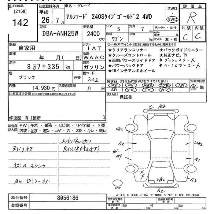 TOYOTA ALPHARD 2014 г., лот № 142