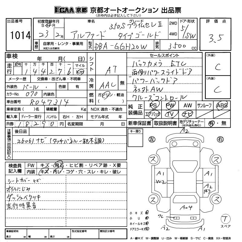 TOYOTA ALPHARD 2011 г., лот № 1014