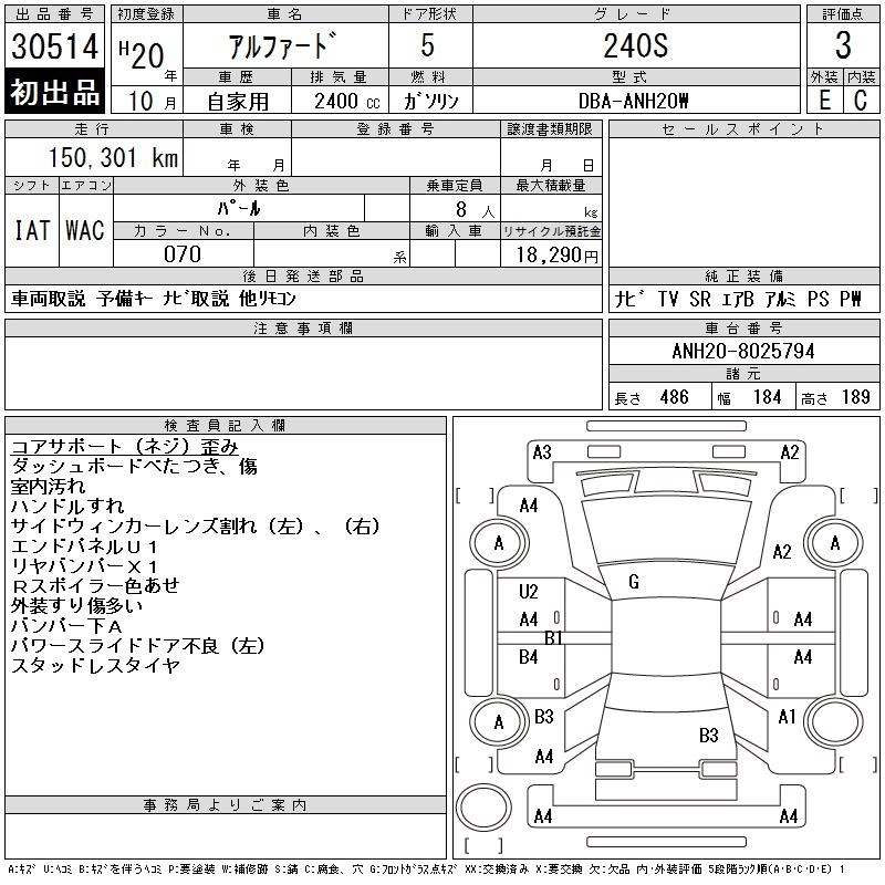TOYOTA ALPHARD 2008 г., лот № 30514