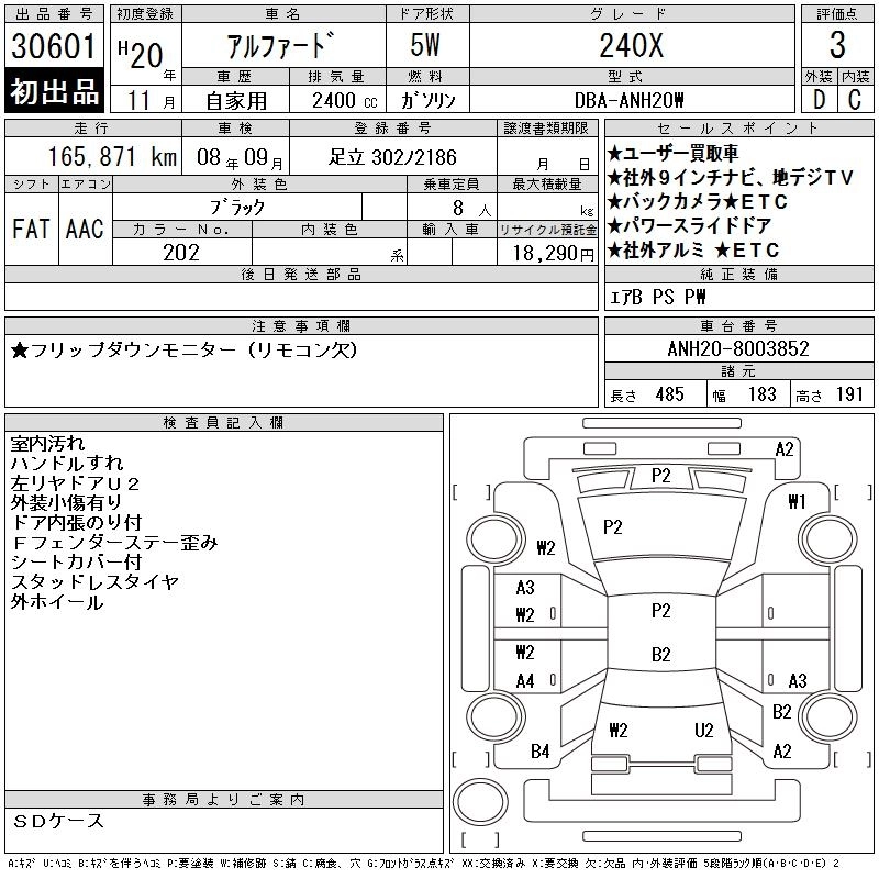 TOYOTA ALPHARD 2008 г., лот № 30601