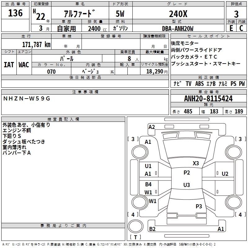 TOYOTA ALPHARD 2010 г., лот № 136