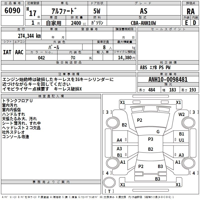 TOYOTA ALPHARD 2005 г., лот № 6090