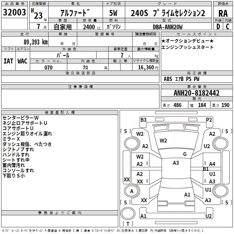 TOYOTA ALPHARD 2011 г., лот № 32003