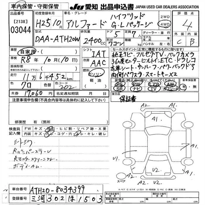 TOYOTA ALPHARD 2013 г., лот № 3044