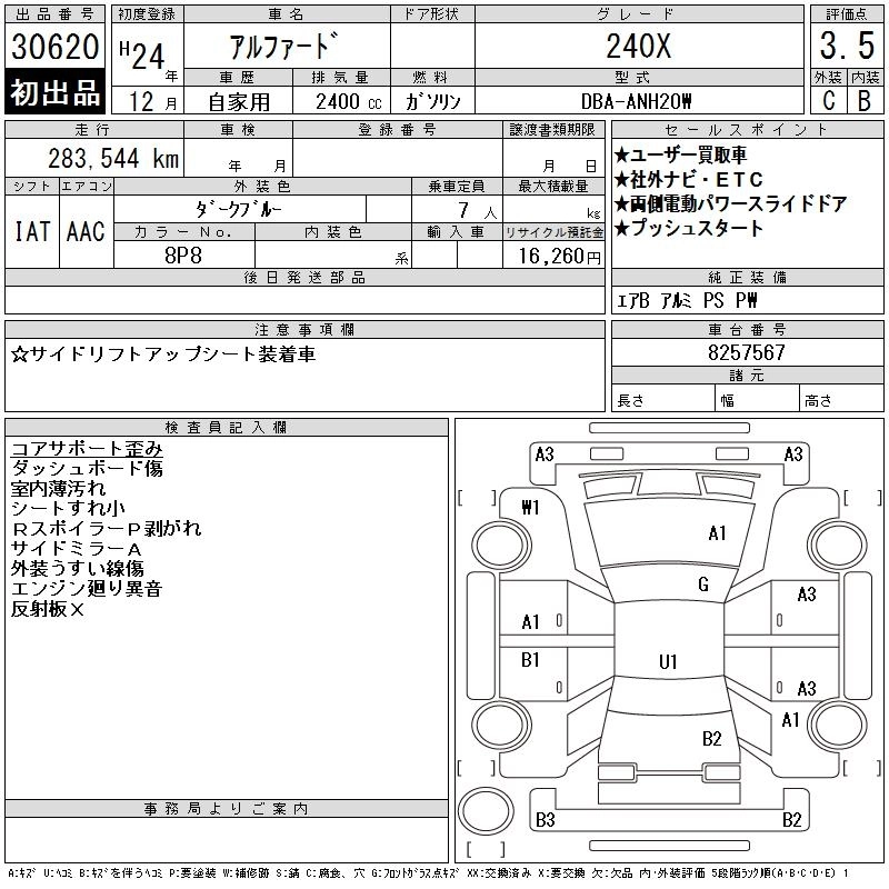 TOYOTA ALPHARD 2012 г., лот № 30620
