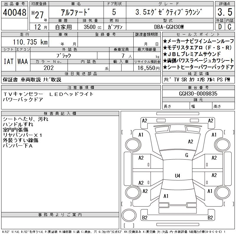 TOYOTA ALPHARD 2015 г., лот № 40048