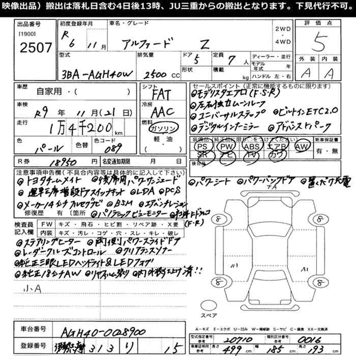 TOYOTA ALPHARD 2024 г., лот № 2507