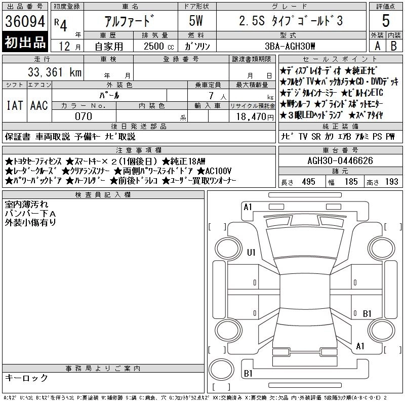 TOYOTA ALPHARD 2022 г., лот № 36094