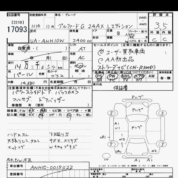 TOYOTA ALPHARD 2002 г., лот № 17093