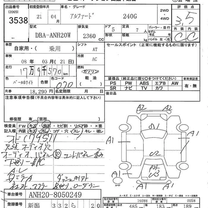 TOYOTA ALPHARD 2009 г., лот № 3538