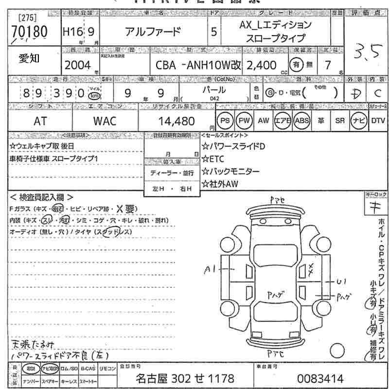 TOYOTA ALPHARD 2004 г., лот № 70180