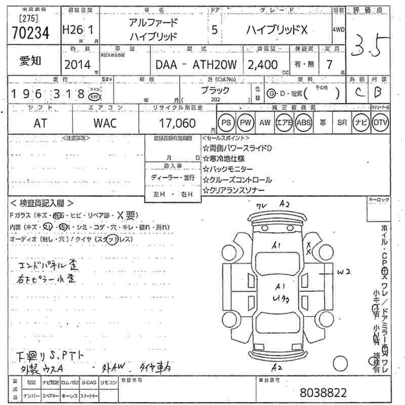TOYOTA ALPHARD 2014 г., лот № 70234