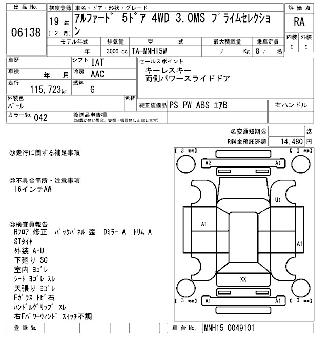Статус продан Лот 6138 Аукцион ARAI Sendai Дата аукциона 23.01.2026