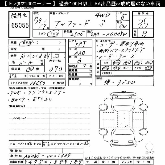 TOYOTA ALPHARD 2017 г., лот № 65055