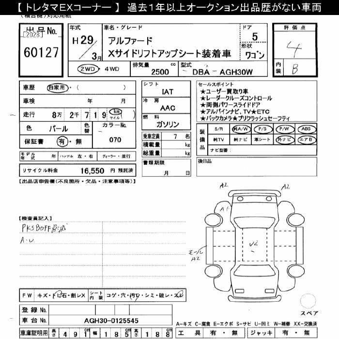 TOYOTA ALPHARD 2017 г., лот № 60127