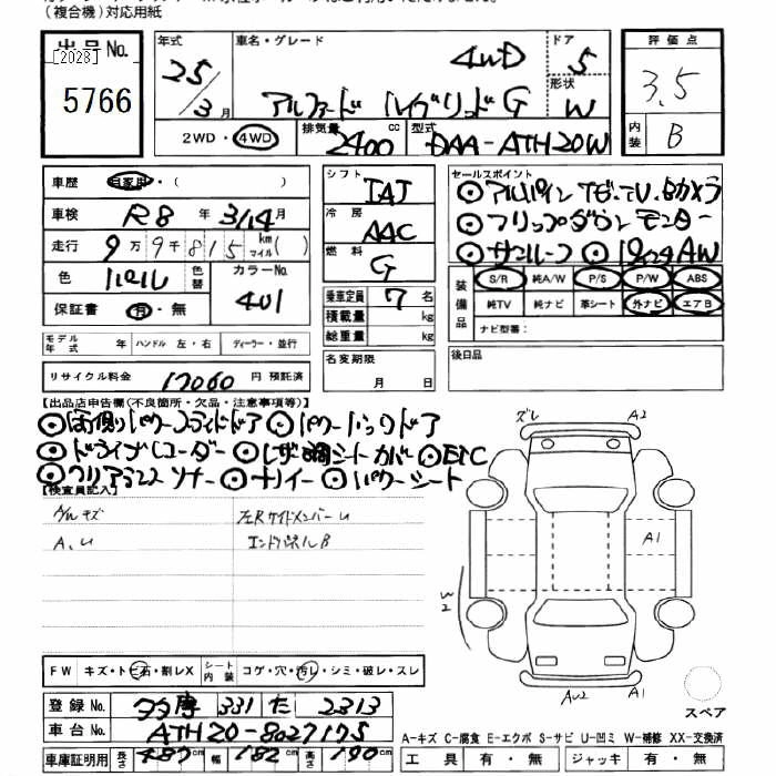 TOYOTA ALPHARD 2013 г., лот № 5766
