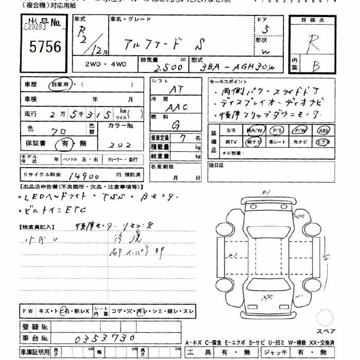 TOYOTA ALPHARD 2020 г., лот № 5756