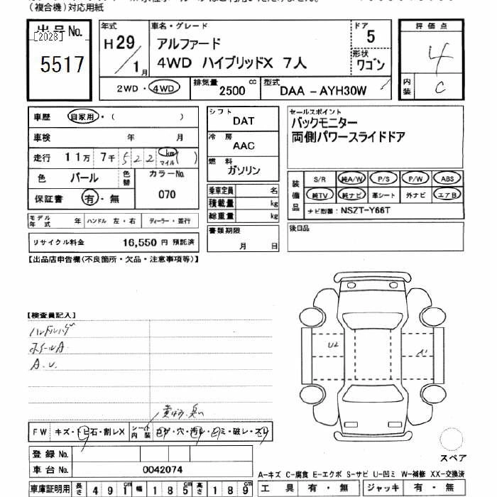TOYOTA ALPHARD 2017 г., лот № 5517