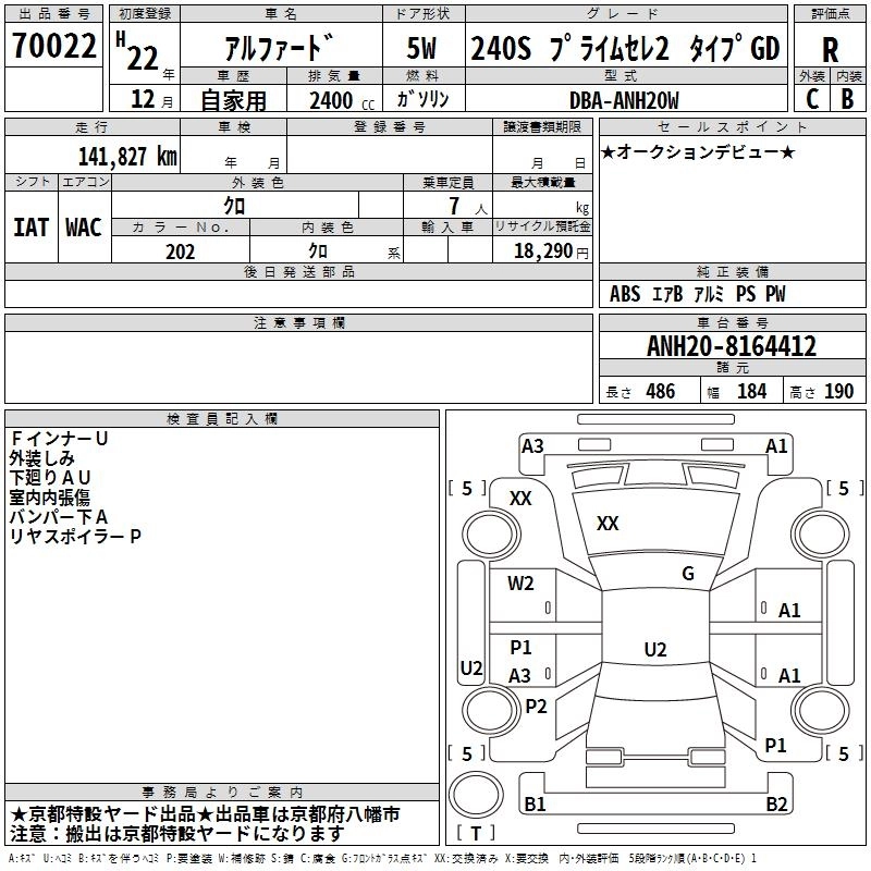 TOYOTA ALPHARD 2010 г., лот № 70022