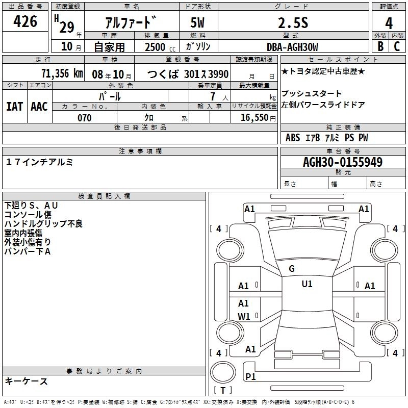 TOYOTA ALPHARD 2017 г., лот № 426