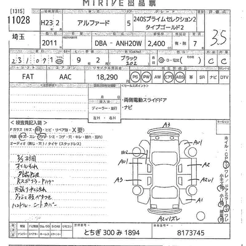TOYOTA ALPHARD 2011 г., лот № 11028