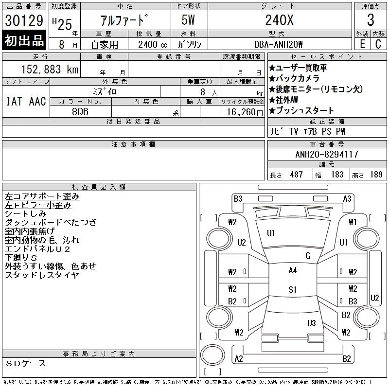 TOYOTA ALPHARD 2013 г., лот № 30129