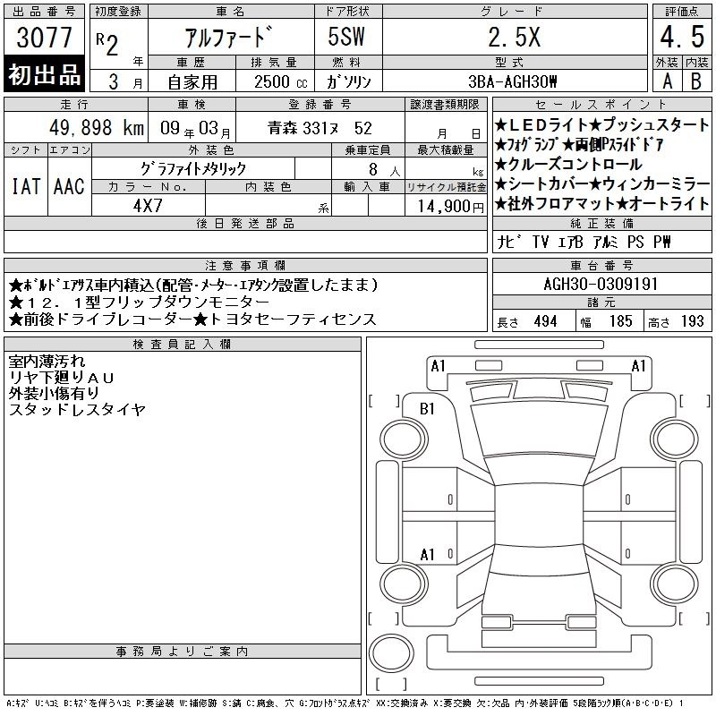 TOYOTA ALPHARD 2020 г., лот № 3077