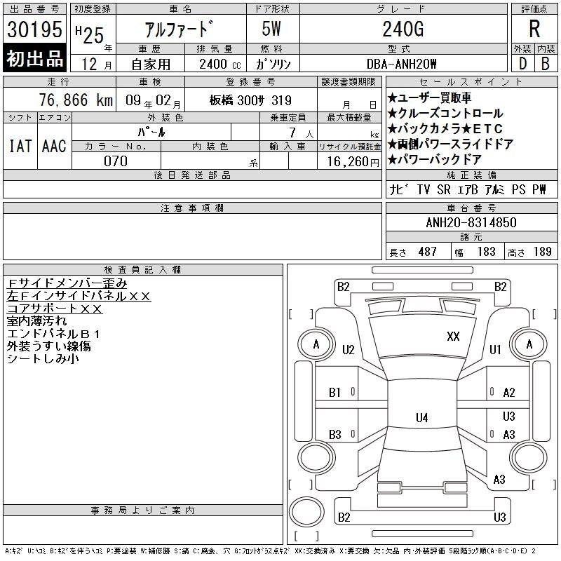 TOYOTA ALPHARD 2013 г., лот № 30195