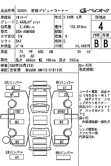 TOYOTA ALPHARD 2007 г., лот № 60034