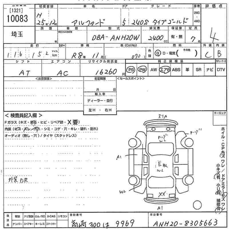 TOYOTA ALPHARD 2013 г., лот № 10083