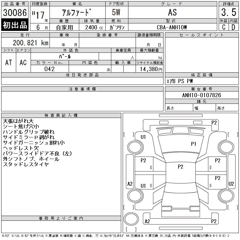 TOYOTA ALPHARD 2005 г., лот № 30086