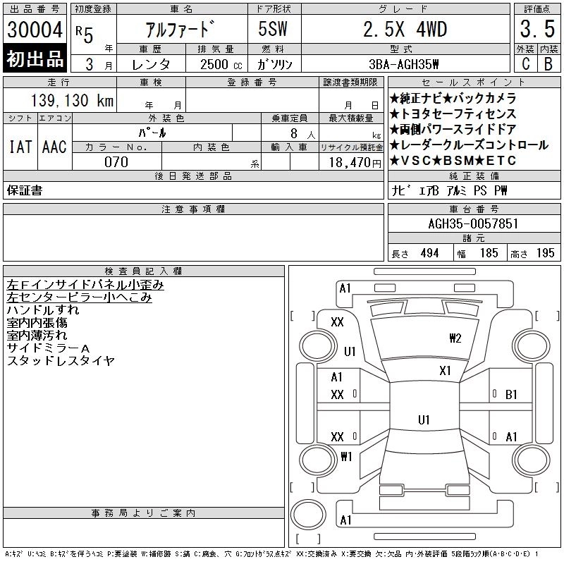 Год выпуска2023 Пробег 139 000 км КузовAGH35W Комплектация2.5X 4WD