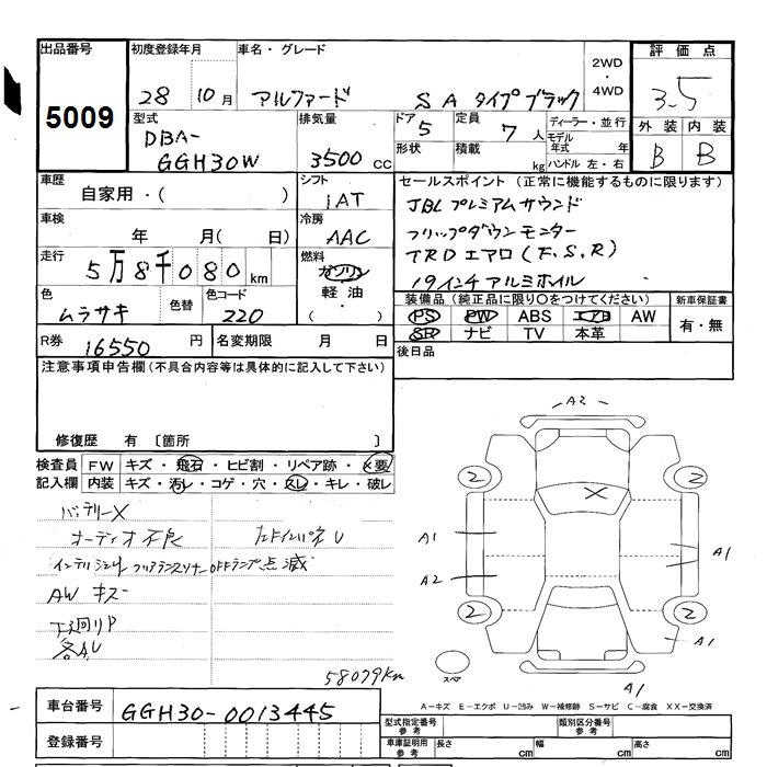 TOYOTA ALPHARD 2016 г., лот № 5009