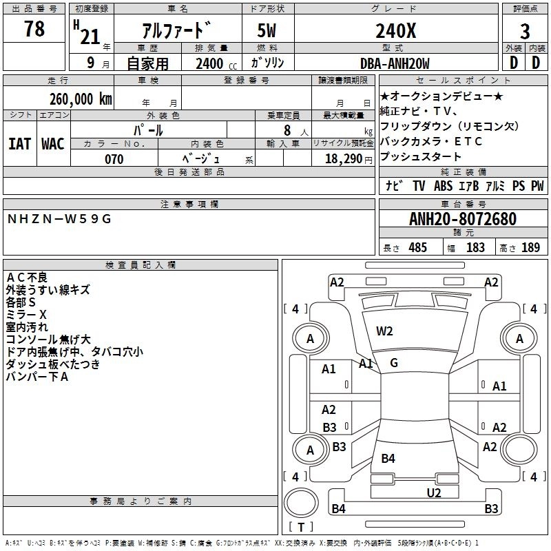 TOYOTA ALPHARD 2009 г., лот № 78