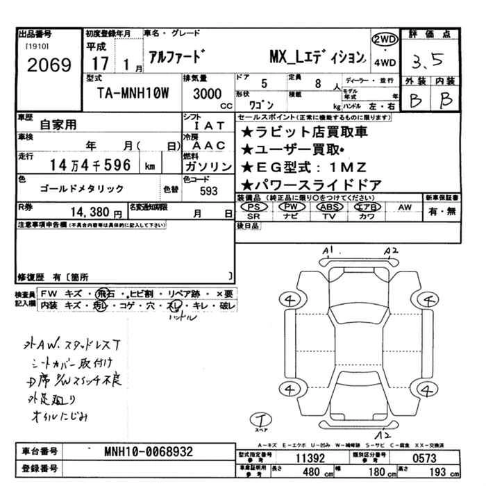 TOYOTA ALPHARD 2005 г., лот № 2069